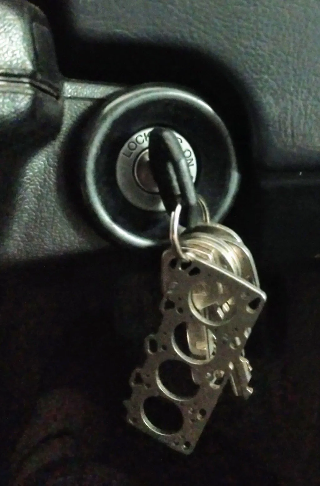 Not just "a head gasket as a keychain", but exactly the one for the 4G63 engine with all the details possible in 0.2*6.9*2.8cm size.