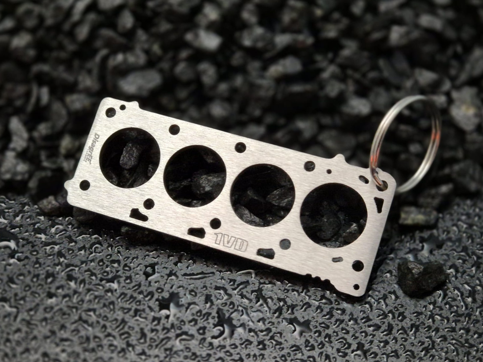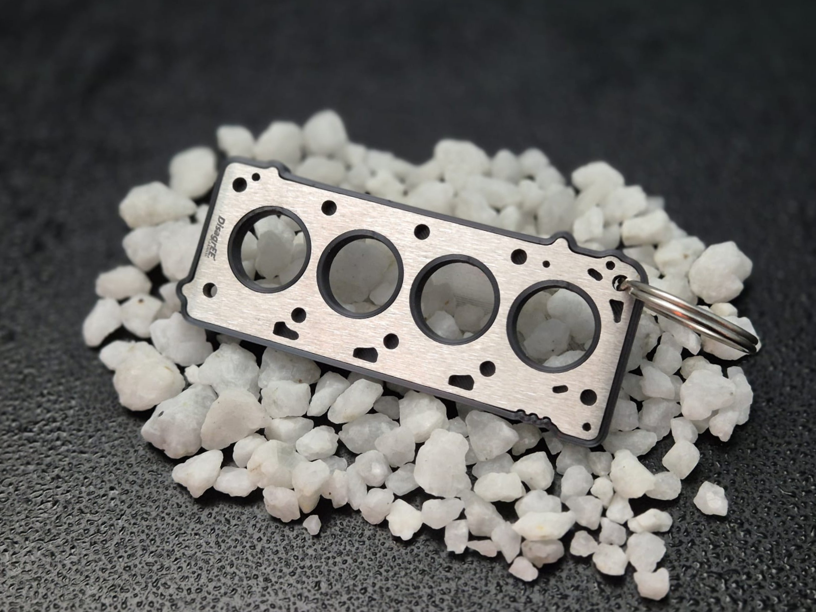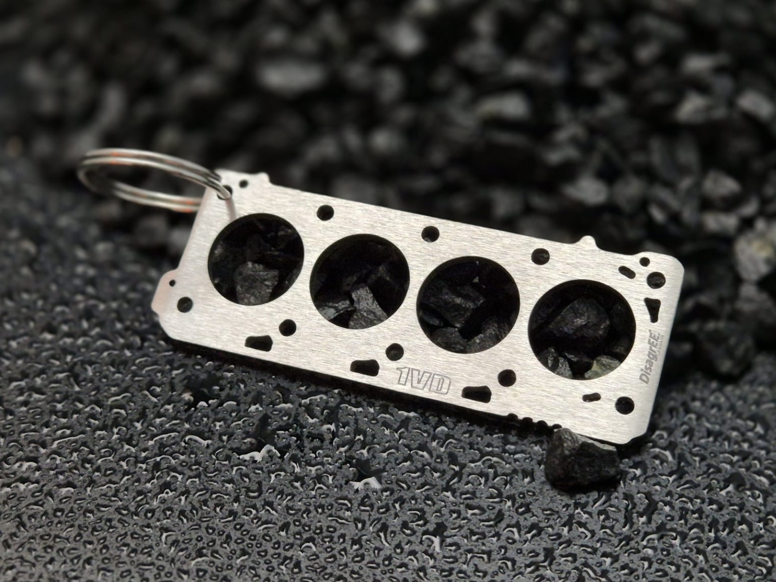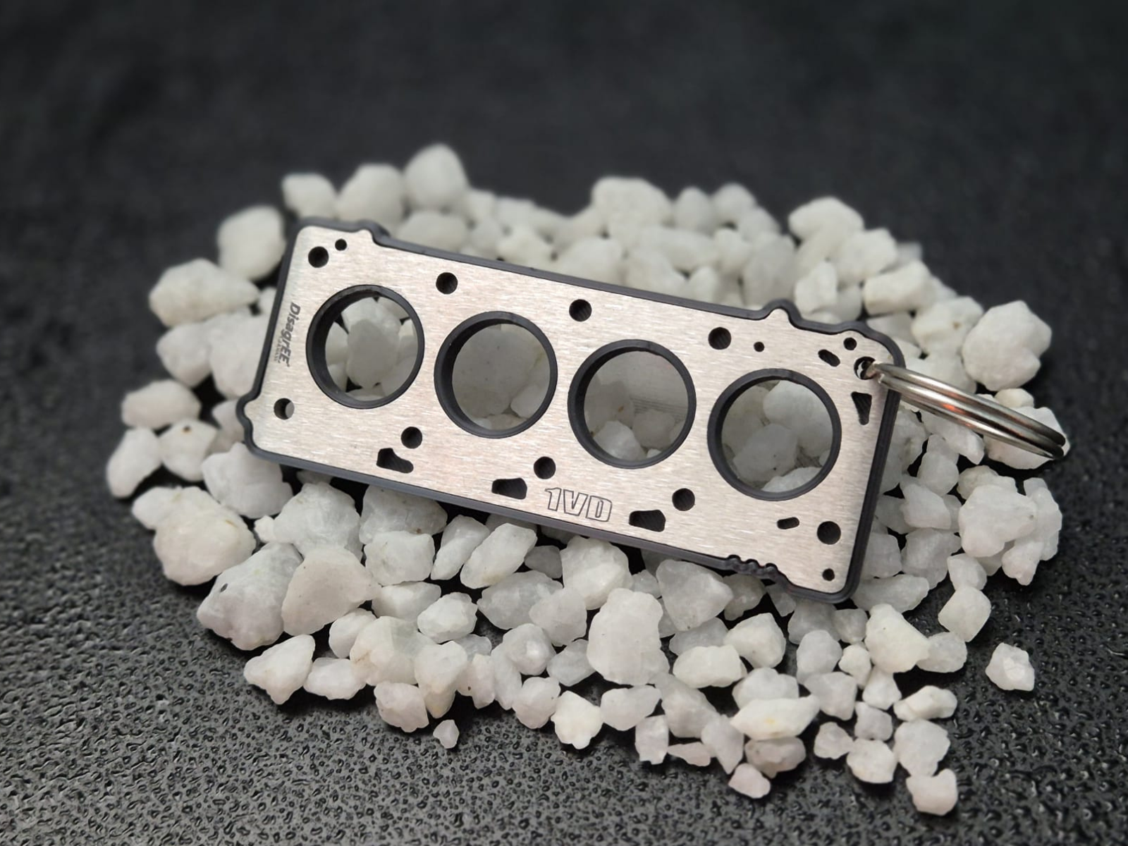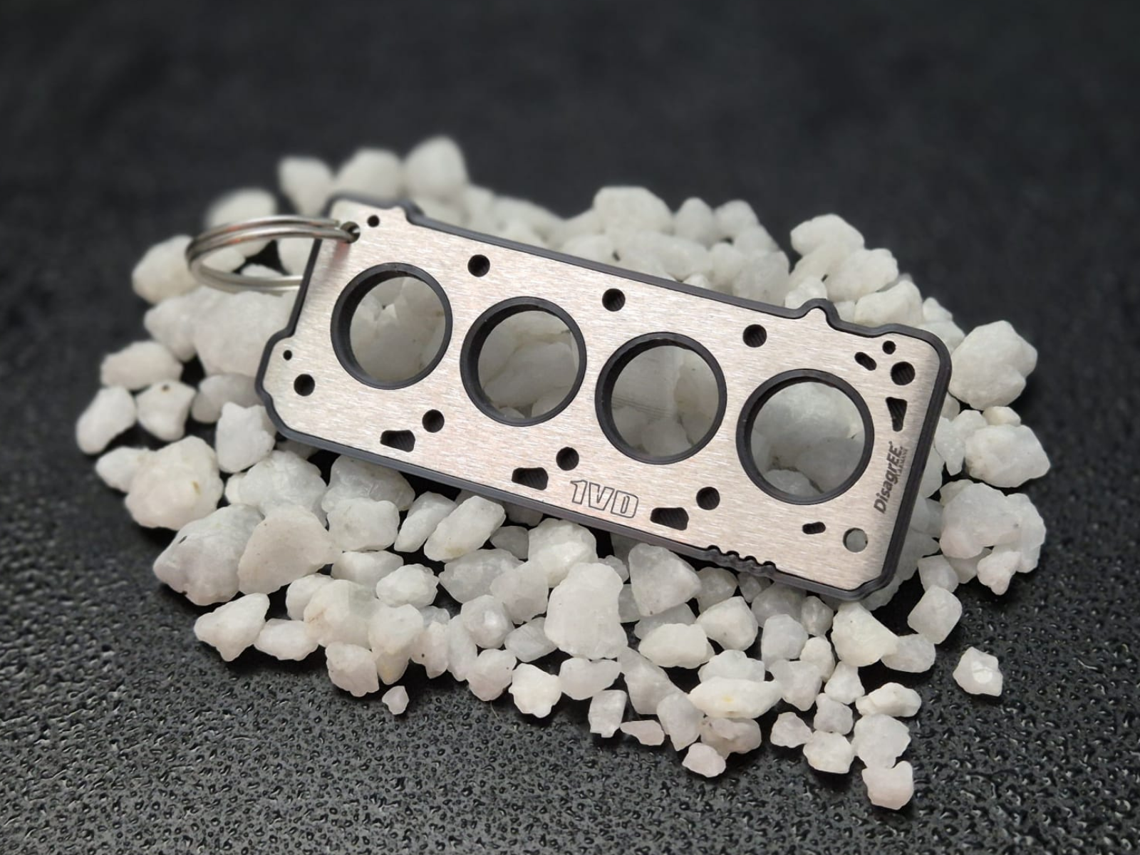 Not just "a head gasket as a keychain", but exactly the one for the 1VD engine with all the details possible in L:65 × 25 × 2 mm - R:64 × 26 × 2 mm size.