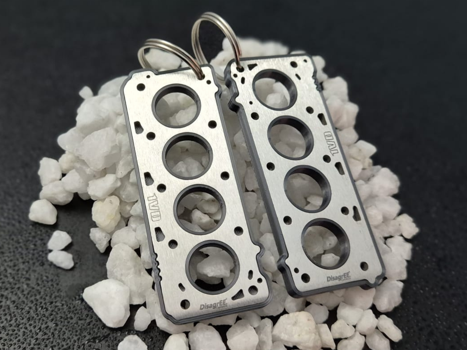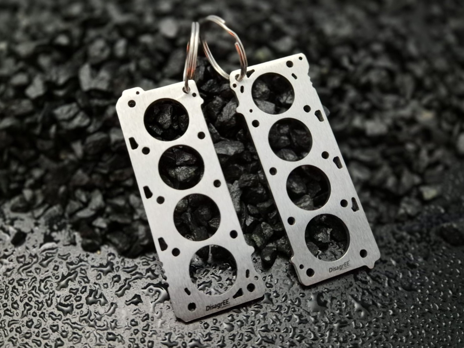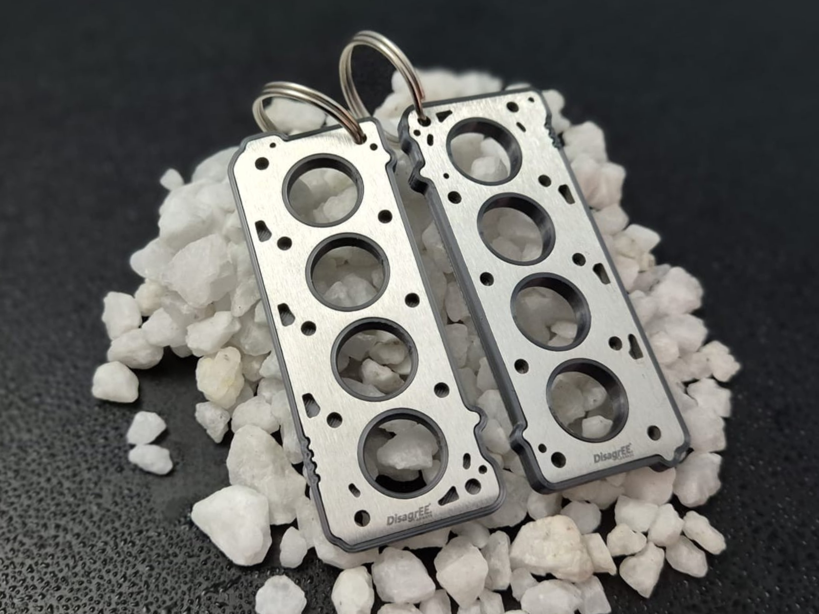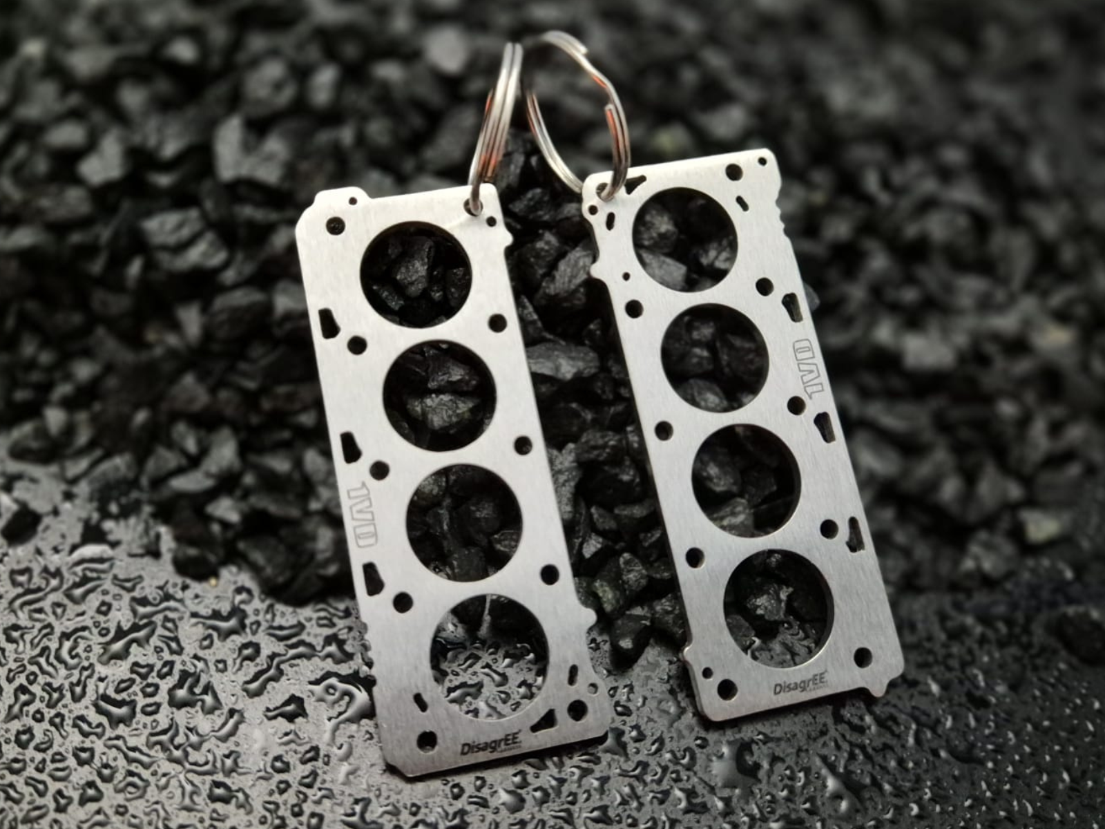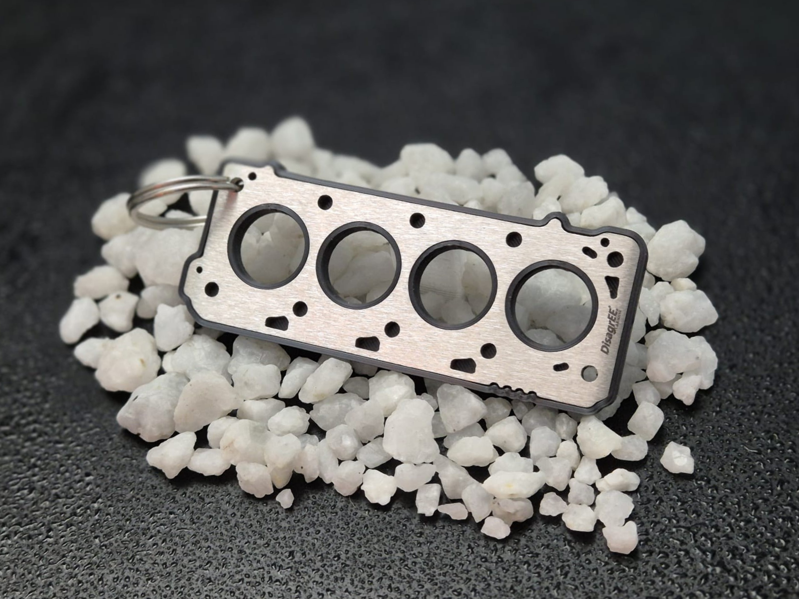 Not just "a head gasket as a keychain", but exactly the one for the 1VD engine with all the details possible in L:65 × 25 × 2 mm - R:64 × 26 × 2 mm size.