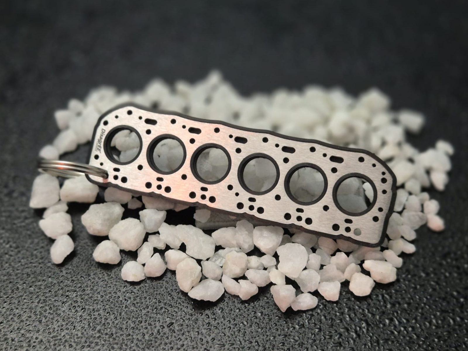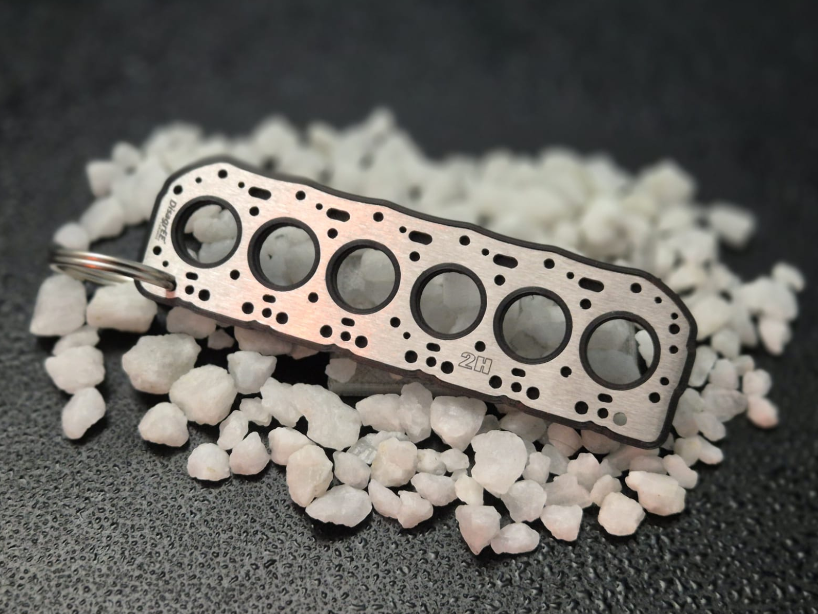 Not just "a head gasket as a keychain", but exactly the one for the 2H engine with all the details possible in 79 × 22 × 2 mm size.