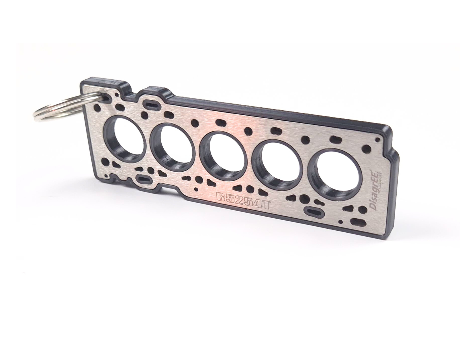 Not just "a head gasket as a keychain", but exactly the one for the B5254T engine with all the details possible in 0.2 x 7.4 x 2.5cm size.